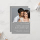 Couleur arrière - plan gris, script blanc et texte simple Faire-part de mariage moderne avec photo fiançailles. Conception par Elke Clarke©. Customisez avec vos noms, photo et texte d'information du mariage. Pour d'autres couleurs, veuillez contacter le concepteur.