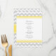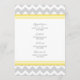 Menu de dîner de mariage dans jaune citron lumineux, gris élégant et blanc avec le rétro motif de zigzags de chevron d'amusement, personnalisable avec vos détails et disponible dans les produits assortis de mariage.
