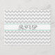 Carte de réponse RSVP de mariage élégante faite dans un motif en zigzag gris clair et blanc chevron, sur le devant, avec une bande verte et blanche menthe, à travers le texte central et noir lire RSVP. Le dos est fait dans un gris pâle, avec une fine ligne verte à la menthe séparant la partie de la carte de réponse de la partie de l'adresse de retour de la carte postale. Personnalisez le texte en fonction de vos besoins mariages. Produits mariages correspondants disponibles.