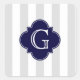 Light Gray and White Medium Stripes Pattern, label Navy Blue Quatrefoil Monogram A classic, stylish, chic striped pattern light grey and white. Customize the navy blue quatrefoil label with your monogram, name or other text. (Clic on "Customize it" to adjust font sizes, colors, etc.) If you would like this design / label in other colors, just drop us email. 2013 ©FantabulousPatterns All rights reserved