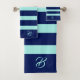 Moderne et élégante géométrique rayures bleu marine sur un arrière - plan vert changeant et monogramme personnalisable.