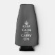 Funny Grey restez calme et portez un glacière de bouteille modèle. Faites votre propre personnalisation garder le calme et poursuivre le design parodique. Vintage keepcalmandcarryon typographie avec couronne. Créez votre propre parodie humoristique de calme avec ce modèle personnalisé. Couleur arrière - plan personnalisable. gris Idée amusante pour les boissons au mariage, fête d'anniversaire, fête de la bière, etc. Idées cadeaux personnalisées.