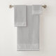 Serviette de bain avec un design de frise grecque que vous pouvez customiser avec n'importe quel texte de votre choix. Si vous avez besoin d'aide pour vous customiser, contactez-nous via le lien de cette page. Serviette de frise Grecian gris