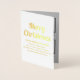 Joyeux Noël! Une des fêtes les plus célèbres de l'année. C'est aussi l'une des meilleures saisons pour annoncer votre entreprise ou pour promouvoir votre marque auprès de clients ou clients. Carte de papier personnalisable que vous pouvez mettre votre marque d'entreprise, vos produits ou services et avec voeux de Noël. Vous pouvez mettre jusqu'à 4 produits. Customisez-le et utilisez-le comme matériel marketing pour annoncer votre marque et promouvoir vos produits ou services d'affaires. Carte Foil que vous pouvez utiliser pour sensibiliser la marque. Vous pouvez l'utiliser en décembre ou Noël en juillet. Les couleurs design sont des textes en feuille d'or sur le devant et à l'intérieur sont des textes noirs sur arrière - plan gris. Pour customiser cette carte, téléchargez votre logo d'entreprise, des images de vos produits ou services, tapez votre nom d'entreprise, une brève description attrayante de votre entreprise et de vos produits ou services, le nom de vos produits ou services, l'adresse, le numéro de téléphone, le courriel et le site Web ou votre page de médias sociaux professionnels. Veuillez vérifier l'apparence sur tous les côtés après avoir téléchargé le logo, les images et les textes de saisie. Si l'apparence vous plaît, vous pouvez passer votre commande maintenant. Si vous avez besoin de redimensionner et déplacer le logo, les images et les textes pour s'adapter à cette carte, s'il vous plaît changer dans l'outil de conception. Vous pouvez également effectuer d'autres modifications en fonction de l'apparence de cette carte que vous préférez dans l'outil de conception, comme changer la couleur arrière - plan, la couleur de police et le style de police. Joyeux Noël! Je vous souhaite plus de ventes ce jour férié.