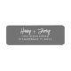 Étiquettes d'adresse de retour gris avec script moderne. Personnalisez avec vos informations et le choix des couleurs. Ce sont certainement nos favoris des fans et nous ne les blâmons pas. Elégant et chic avec un look simple et moderne.