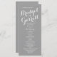 Design de texte moderne en gris imprimé carte de mariage programmes avec texte blanc.