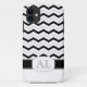 Coque iPhone 5 moderne et tendance, conçu avec un motif en zigzag de chevron en alternance gris, noir et blanc monochrome, et personnalisé avec votre monogramme / initiales.