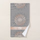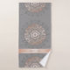 Raccord rideau de douche et tapis de bain disponibles! Mandala floral en or rose tendance sur un arrière - plan gris. Un cadeau élégant pour elle. Customisez cette serviette de bain avec votre nom.