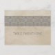 Simple et élégant Rustic Lace Numéro de table Carte postale avec un aspect papier texturé vintage arrière - plan et une bordure motif en dentelle douce et dainty en gris. Facile à customiser, il suffit d'ajouter le ou les numéros de table appropriés dans le champ de texte fourni. Cliquez sur "Customiser" pour trouver d'autres options de personnalisation.