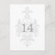 Moderne avec élégance chic décrit cette subtile Mariage damassé Table Numéro Postcard avec un arrière - plan gris clair damassé fleuri. Cette carte de table classique est parfaite pour un mariage traditionnel et peut être facilement customisé avec un ou des numéros de table ou les détails de votre mariage. Pour plus d'options de personnalisation, cliquez sur le bouton Customiser.