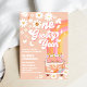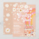 Celebrate your little ones milestone with this retro-inspired 1st birthday invitation featuring a peach background, daisies, butterflies, stars, and a colorful hippie van. The playful 1970s design brings peace, love, and fun to your party theme, making it perfect for boho, flower child, or groovy birthday celebrations. Personalize easily with your event details and set the tone for a joyful, stylish gathering your guests will remember.