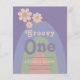 Groovy one, célébrez son 1er anniversaire avec cette invitation de fête d'anniversaire rétro des années 1970 vintage avec des couleurs pastel arc-en-ciel dans des tons violet bleu vert et rose. Avec un design de marguerite simple et des modèles faciles à utiliser, cette invitation personnalisée prépare le terrain pour une fête de fille hippie groovy cool. Œuvre originale de l'artiste Catherine Sweetman