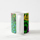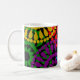 Cette tasse a un design Black History de grands cercles formés de formes de gouttes de pluie et de cercles en rouge, jaune, violet, vert et turquoise.