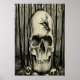 Un crâne effrayant dans la forêt noire, avec une fissure dans la tête. C'est un art généré par l'IA.