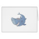 Un requin bleu caricature avec un grand sourire et de grandes dents.