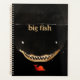 Ce dessin dominant en noir illustre une grande illustration effrayante de requin qui suit un petit poisson rouge. Vous pouvez personnaliser le texte par défaut "big fish".