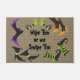 Ce grand tapis de porte d'Halloween comporte des bottes de sorcière insolites parsemées sur un tapis de porte rustique faux burlap, avec les mots modifiables Wipe 'Em ou we Swipe 'Em dans le texte saisonnier. De Heard_. #FunnyHalloween #Halloween