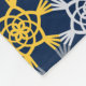 Couverture en polaire avec une grande empreinte de flocon de neige en bleu, jaune, blanc et gris platine.