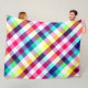 Une grande couverture en toison avec un design motif plaid coloré aux couleurs arc-en-ciel.