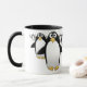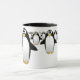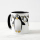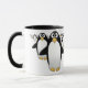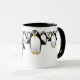 Groupe de pingouins sur une tasse de café - intérieur noir, avec une poignée noire.