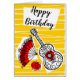 Un design fantaisiste de style rétro avec des souvenirs de vacances espagnoles ; guitare en fer forgé, ventilateur en dentelle et rose rouge. Un design personnalisable en noir, blanc, rouge et jaune doré pour vous permettre de personnaliser avec vos propres textes, images et idées. Une image art numérique originale.