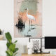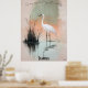 Une représentation minimaliste d'une grue blanche debout parmi des roseaux doux dans un étang tranquille, parfait pour créer une atmosphère paisible dans des espaces de méditation ou de pleine conscience