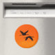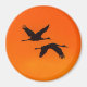 Aimant rond de 3" avec l'image de deux Grues Sandhill volant dans un coucher de soleil orange