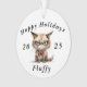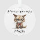Un mignon chat grincheux avec les "vacances joyeuses" amusantes et sarcastiques avec cette année, nom et sur le dos "toujours grincheux". Mignonne aquarelle illustration de ce chat en colère avec un joli arc rouge.