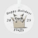 Un mignon chat grincheux avec les "vacances joyeuses" amusantes et sarcastiques avec cette année, nom et sur le dos "toujours grincheux". Une jolie illustration d'aquarelle de ce chat en colère caché dans une boîte vide.