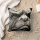 Laisse la gargouille garder ton canapé. Face de gargoyle grincheux sur un coussin monochromatique.