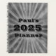 Ce planificateur annuel présente un motif de démarrage rayé gris grunge avec un texte personnalisable qui dit, "Paul's 2024 Planner" dessus, mais vous pouvez le changer pour dire ce que vous voulez.