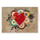 Un coeur de style grunge rétro amusant avec des bagues de bullseye et des motifs de peinture éclaboussés, parfait pour la Saint-Valentin ou toute occasion romantique.