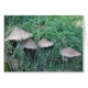 Vier hübsche, beige Pilzhüte im grünen Gras sind auf dieser Grusskarte. Die Karte ist blanko.