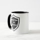 Guerrier pour le Christ tasse à deux tons. Partagez votre engagement chrétien avec ce bouclier logo mug.