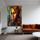 Une jeune guerrière cyberpunk aux yeux jaunes et à la peinture colorée au visage. C'est un art généré par l'IA.