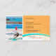 Une carte de visite moderne avec vagues et palmiers. Parfait pour les agents de voyages, les instructeurs et les guides touristiques. Facile à customiser avec vos informations.