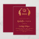 Arrière - plan de Bourgogne. Une couronne de laurier classique et une casquette de graduation. Personnalisez et ajoutez l'année, le nom et les détails. Texte doré. 1 feuille = 1 invite imprimé bord à bord.