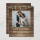 Une carte de remerciement de mariage rustique et abordable imprimée sur du papier semi-brillant léger de 110 lb de format 4,5x5,6 pouces au lieu de carton, présentant des planches de bois brun patiné par les intempéries et des guirlandes lumineuses jaunes douces ainsi que le titre LOVE & THANKS et la date de votre mariage dans une police manuscrite de style western country et votre nom dans une typographie manuscrite au pinceau. Le verso de la carte présente le même fond de planches de bois et offre un espace pour taper un message de remerciement pré-imprimé (ou supprimer le texte exemple pour laisser vierge et écrire des notes personnelles de remerciement à la main. Idéal pour les budgets modestes et/ou pour une remise en main propre à des amis et à la famille. AJOUTEZ DES ENVELOPPES sur la page de commande si désiré. ASSISTANCE : Pour obtenir de l'aide pour la modification ou la personnalisation de la conception, le transfert de la conception vers un autre style de carte ou un autre produit, ou