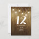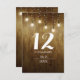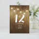 Guirlande de lumières rustique Carte de numéro de table de campagne. Un beau design en bois de grange de campagne avec des lumières scintillantes. Ajoutez simplement vos détails personnalisés au recto et au verso de la carte via l'option facile 'Personnaliser ce modèle'. Il existe un choix de tailles, de formes et de types de papier pour s'adapter au design.