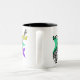 Illustration rétro de guitare avec lettrage personnalisable (Superposition du même texte pour créer une ombre portée). En superposition de la guitare deux formes triangulaires colorées avec le style des années 80 revisitant le les années 50. Conception sur Mug blanc. Correspondance de produits.