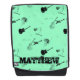 Motif répétitif avec des illustrations noires de guitares sur arrière - plan vert pâle avec nom (noir + couleur claire pour créer de l'ombre portée) sur sac à dos personnalisable. Vous pouvez facilement modifier la taille et la position de la conception et modifier le texte (police, couleur, taille et position) en cliquant sur le bouton personnaliser. Disponible avec design noir sur blanc, arrière - plan jaune. Chaussures assorties, cravate, Coque iphone...