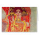 Gustav Klimt Red Woman Gold Snake Art Nouveau Painting - Gustav Klimt était un) était un peintre symboliste autrichien, et un membre du mouvement de sécession de Vienne. Il utilisa de l'or réel dans sa belle oeuvre de femmes Art nouveau et d'art décoratif. Cette peinture de Klimt s'appelait "Médecine" ou Hygiée. Le tableau de Gustav Klimt est celui d'une femme Art nouveau dans une longue robe rouge avec de l'or tourbillonnant autour d'elle. La belle femme tient un serpent doré qui s'effrite. Gustav Klimt a été commissionné en 1894 pour ce tableau Art nouveau, qui a été peint au plafond dans la grande salle de l'Université de Vienne. Cependant, en 1945, le tableau de Klimt a été détruit en Allemagne pendant la guerre. Cette femme Art nouveau est basée sur une photographie d'une partie de la Médecine de Klimt.