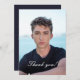 Ce carte de remerciements photo personnalisé est conçu pour coordonner avec notre collection Guy Grad Modern Graduation Collection. Le devant présente une photo du diplômé avec les mots Merci, et le dos a un grand merci aux personnes spéciales qui ont assisté à la remise des diplômes ou envoyé des cadeaux. Tout est totalement personnalisable. Les styles de police et les couleurs peuvent être modifiés dans l'outil de conception,