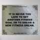 The exercise quote reads: IT IS NEVER TOO LATE TO SET ANOTHER FITNESS GOAL OR TO DREAM A NEW FITNESS DREAM. ~ Felicity Luckey