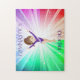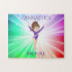 Belles lumières puzzle coloré avec gymnaste en violet. Nom personnalisé.