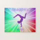 Belles lumières puzzle coloré avec gymnaste en violet. Nom personnalisé.