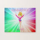 Belles lumières puzzle coloré avec gymnaste en violet. Nom personnalisé.