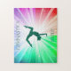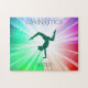 Belles lumières puzzle coloré avec gymnaste en violet. Nom personnalisé.