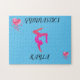 Puzzle de gymnastique avec gymnaste et coeurs. Nom personnalisé !