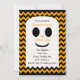 Cette invitation à la fête d'anniversaire d'Halloween présente un mignon fantôme blanc sur un arrière - plan de chevrons noir et orange. Ce design amusant d'Halloween vous permet de mettre tous les détails de votre invitation d'Halloween à l'intérieur du fantôme. Pour une touche spéciale, des bandes de chevrons apparaissent également au dos de l'invitation. Ce design d'invitation est une façon très mignonne pour les invités invitations à une fête d'anniversaire d'Halloween ! Copyright henishouseo